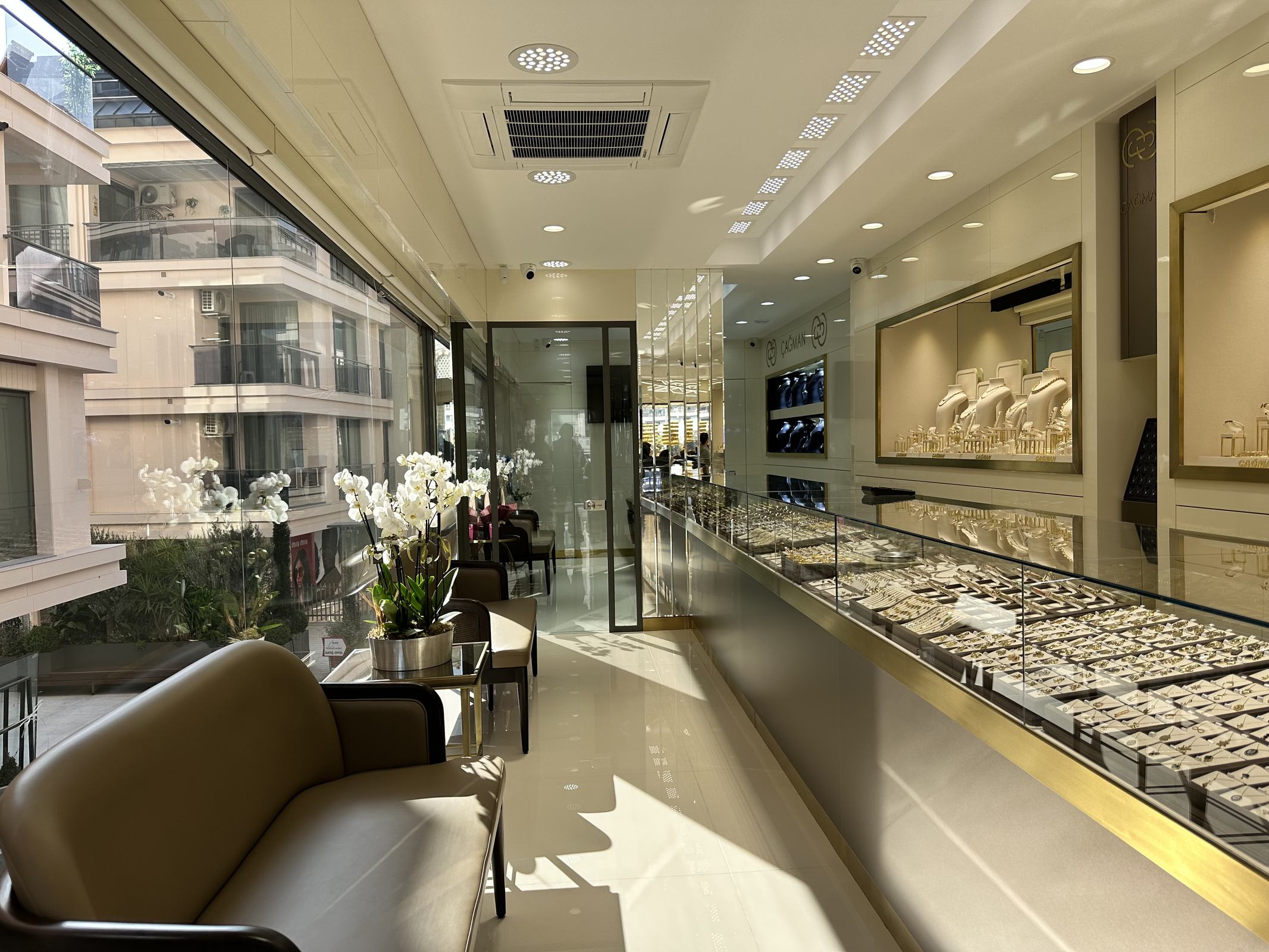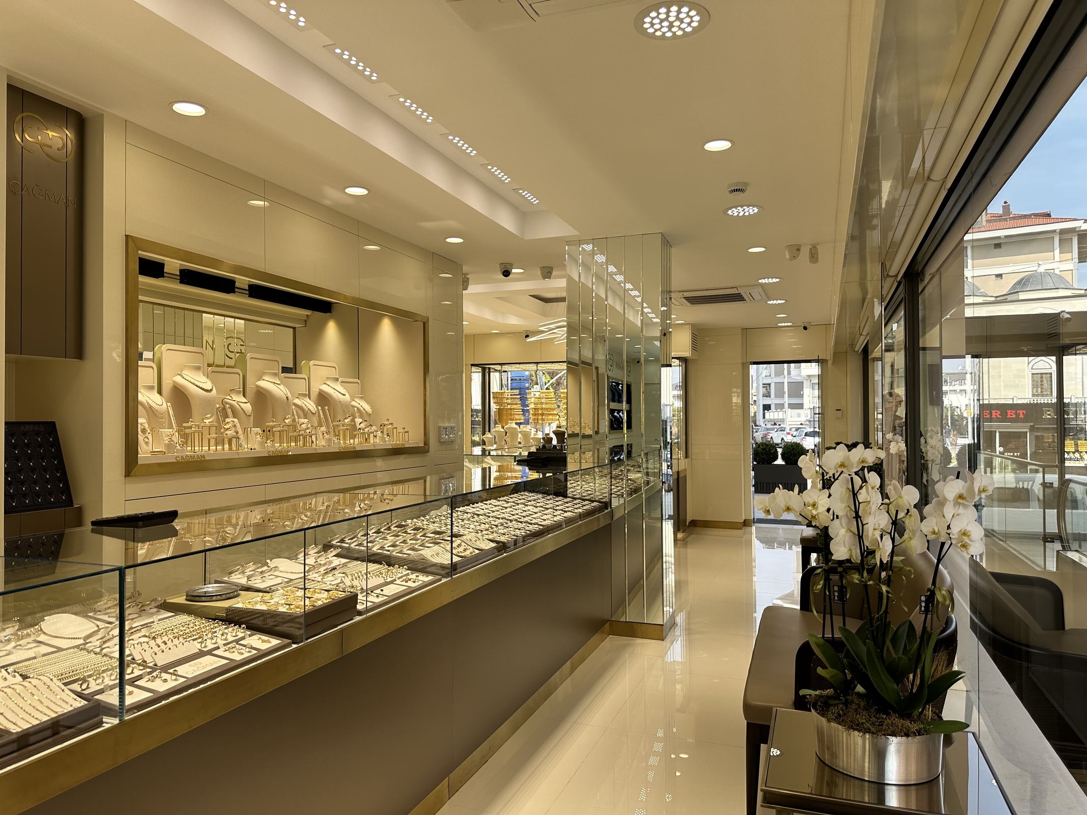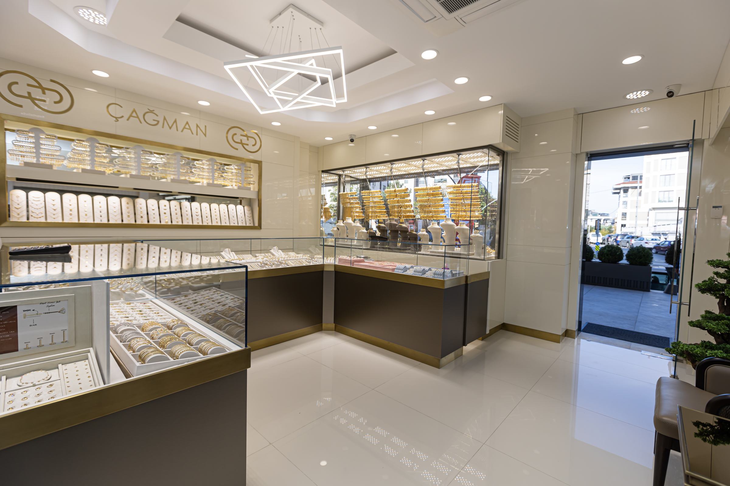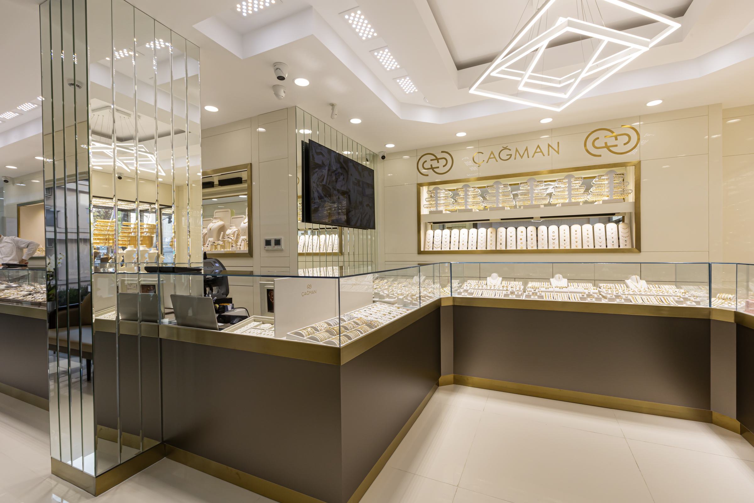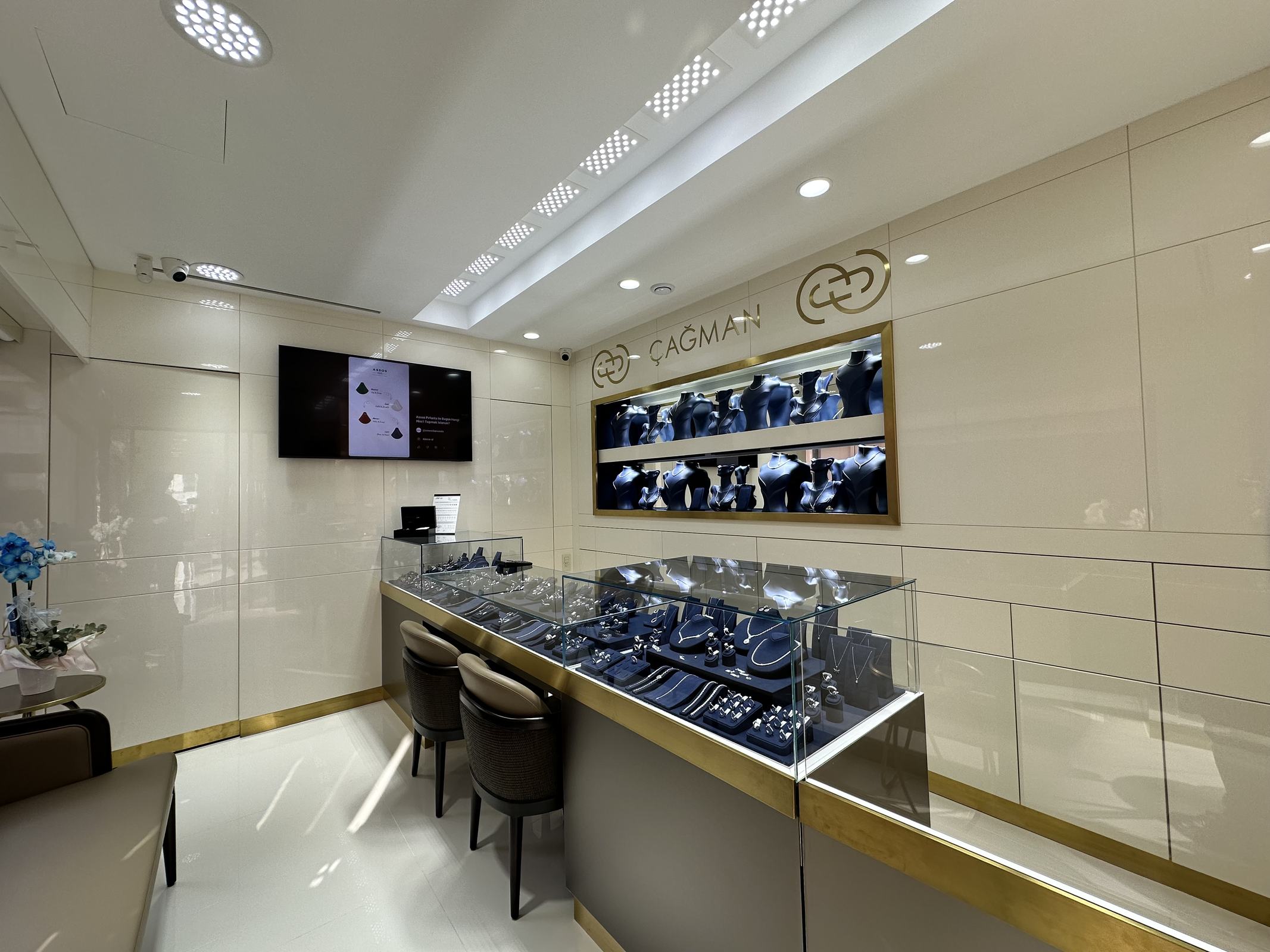Bu iş birliği sayesinde hem estetik hem teknik açıdan bütünlüklü, marka kimliğini doğru yansıtan çağdaş bir kuyumcu mağazası olarak hayata geçirildi.