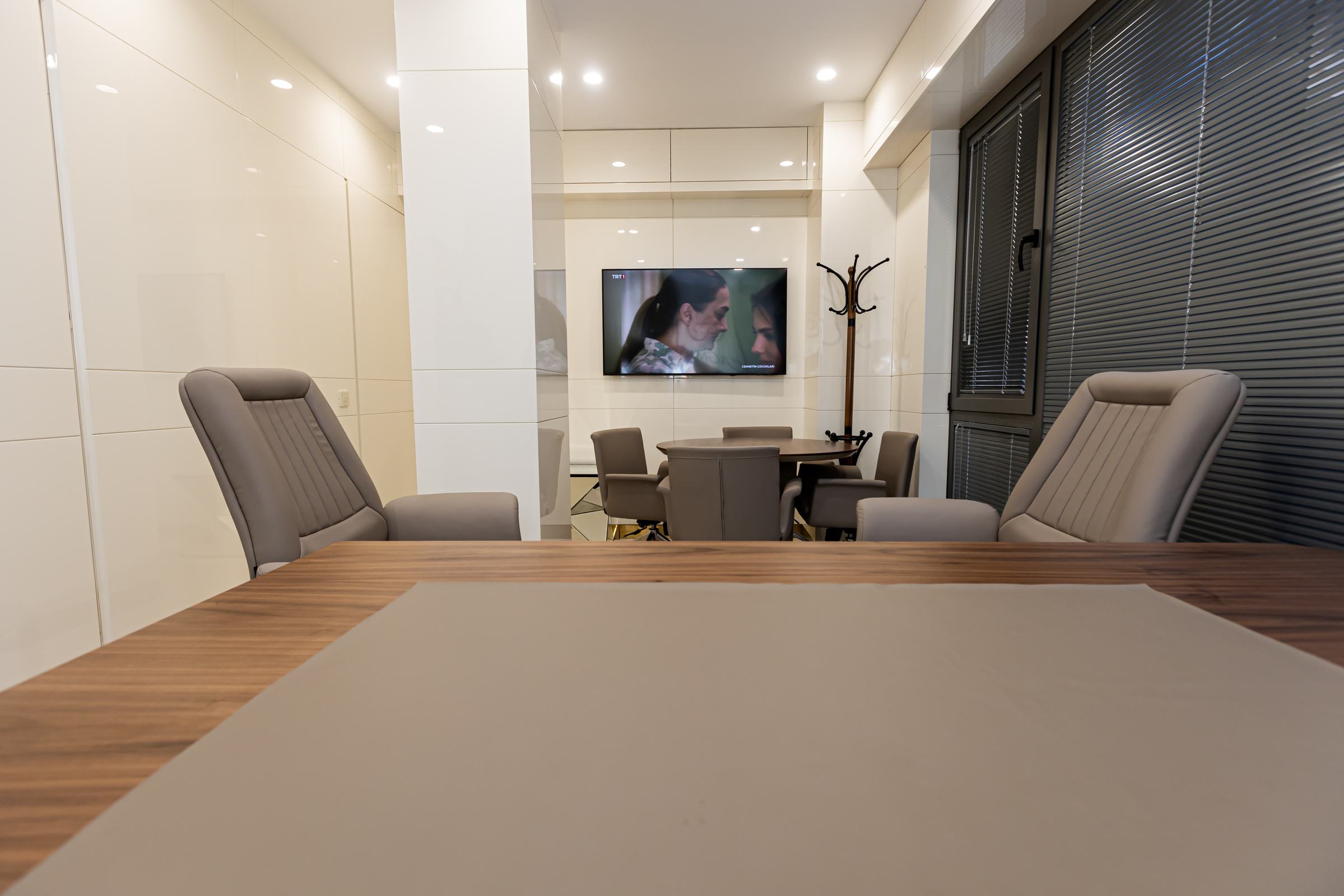 Ön giriş cephesinin dar, iç mekanın ise lineer ve uzun olması, mekansal algıyı doğru yönetmeyi gerektirdi. Girişte güçlü bir odak noktası oluşturularak içeri davetkar bir perspektif sağlandı.